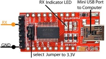 921600 bps 8n1 (any ft232 should do. FT232RL-USB-TO-TTL 3.3V/5V in picture below)