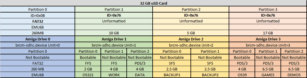 Random example how to create 3 Amiga drives into 32 GB SDCARD: